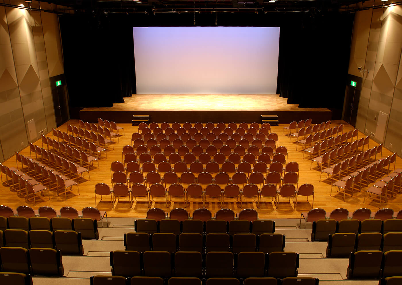 コンサートや演劇、ダンスなどの舞台公演をはじめ、客席を収納してフラットスペースでもご利用いただける多目的ホールです。